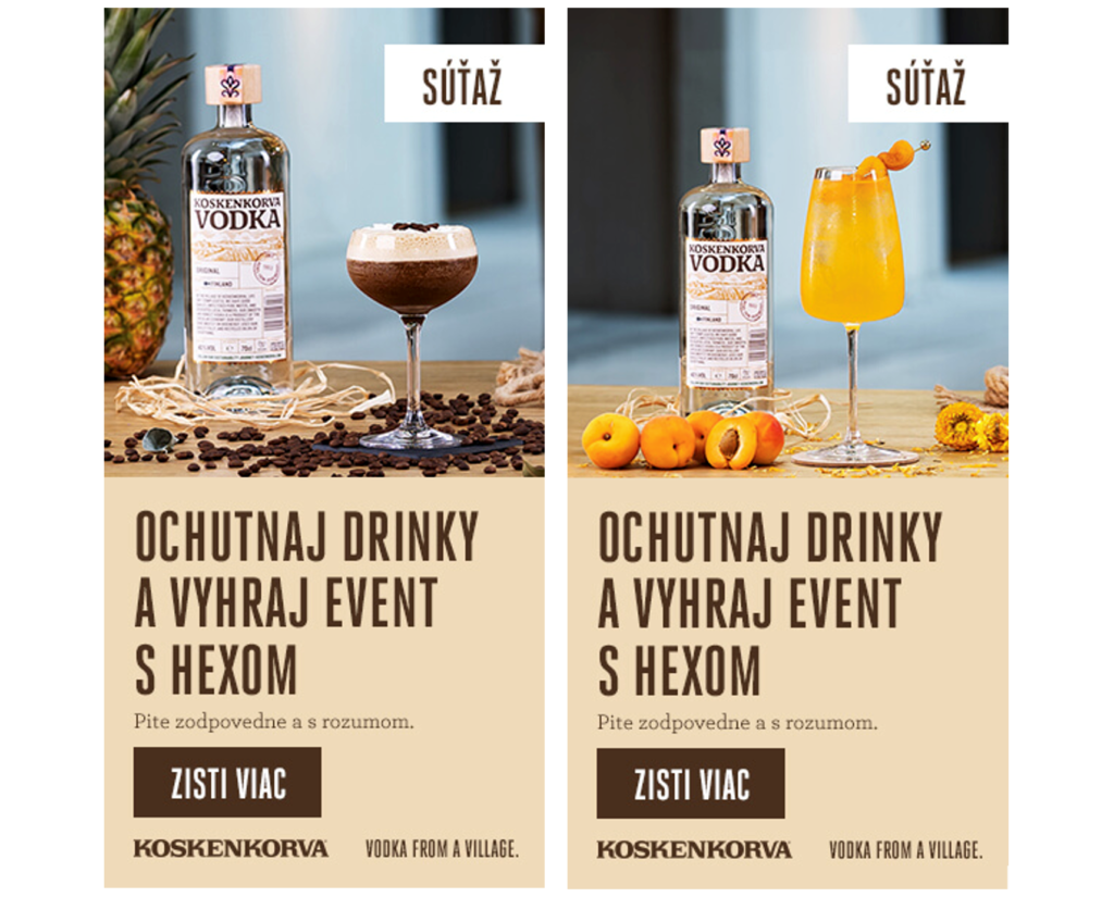 TLeto bolo v znamení súťaže s „Koskenkorvou na Hex“. Spolu s našou partnerskou kreatívnou agentúrou EssenceMediacom sme vytvorili videá a vizuály, kde si členovia kapely HEX nechali namiešať svoje letné netradičné drinky, ako napríklad Tybykeho Kávové Zrnko či Šarkanove marhuľové leto. Hlavnou ingredienciou bola samozrejme vodka Koskenkorva namiešaná v rôznych variáciách a príchutiach.