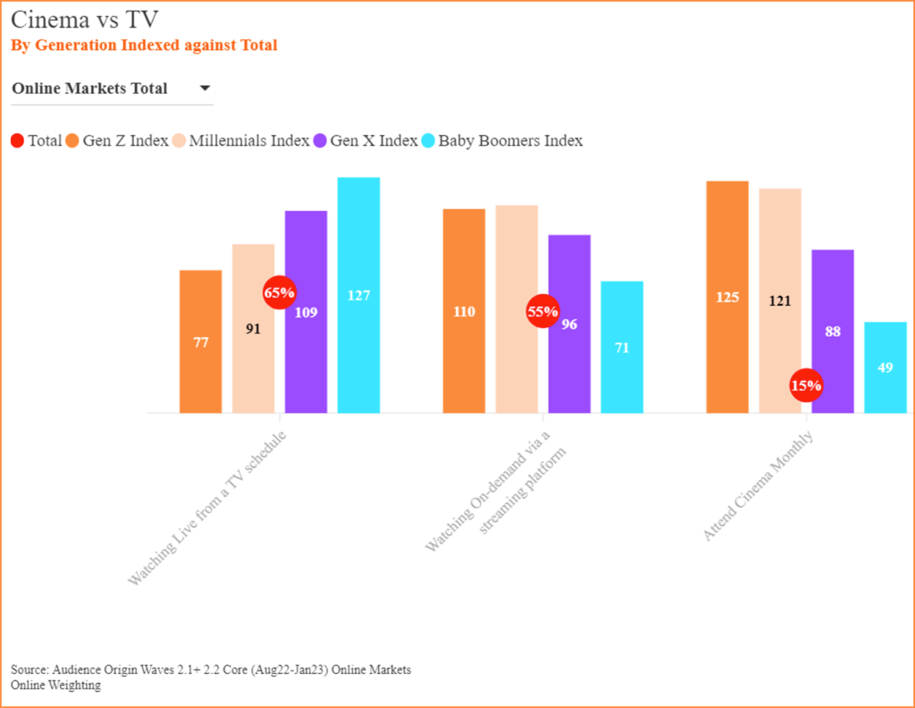 Zistili sme, že mladšie generácie v porovnaní s tými staršími oveľa častejšie navštevujú kino a tiež výrazne viac sledujú streamovanú, než klasickú televíziu.